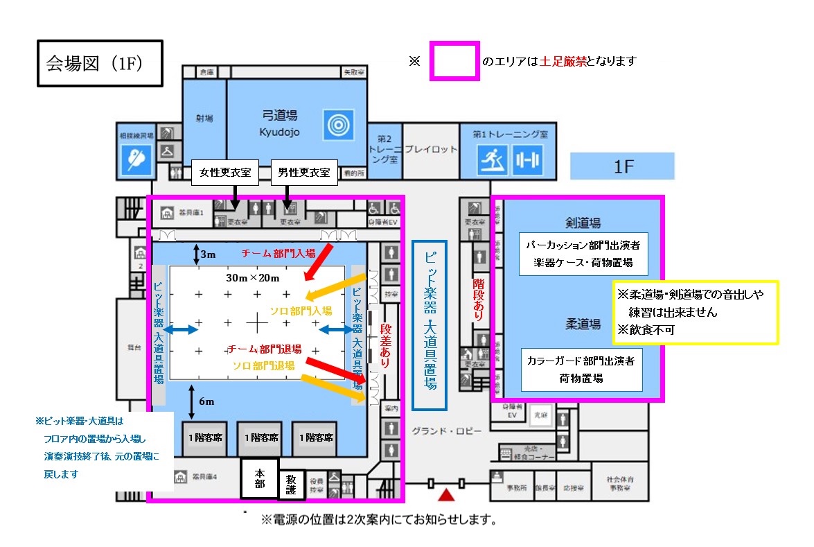 演技フロア図(予定)[221KB]※電源の位置は上記の2次案内をご覧ください。